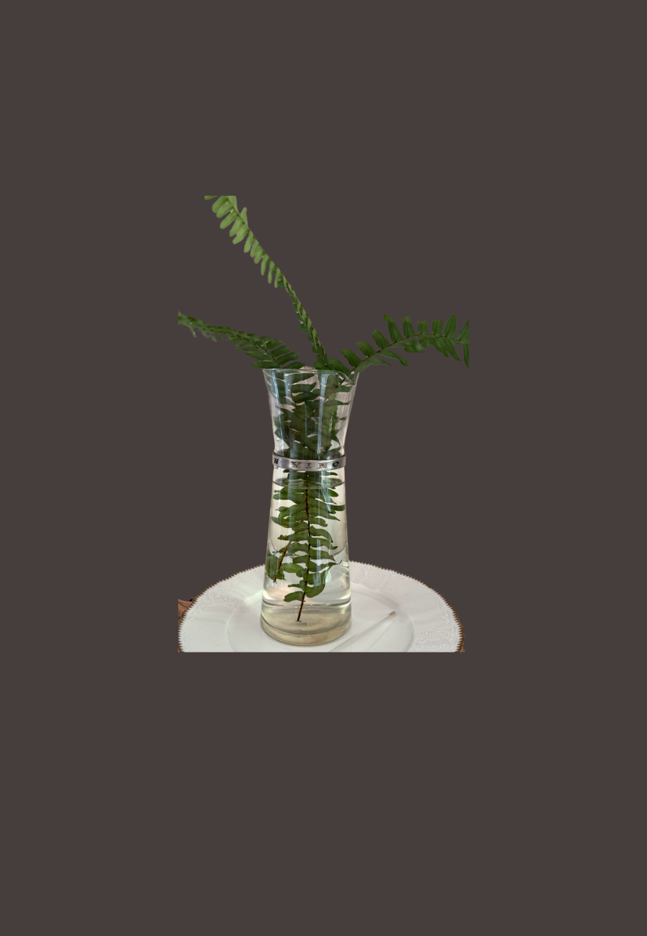 This 19th-century European wine carafe features pewter bands and the classic inscription, in vino veritas—"in wine, truth." Its handblown glass body shows gentle ripples from skilled craftsmanship, while the pewter's patina whispers stories of good times shared. Perfect for holding your favorite wine or fresh blooms!